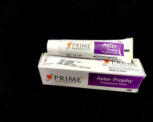 Aster Prophy paste is prophylaxis paste. Used to remove plaque and stains on thooth surface. Main property of Aster Prophy is thixotropic nature.